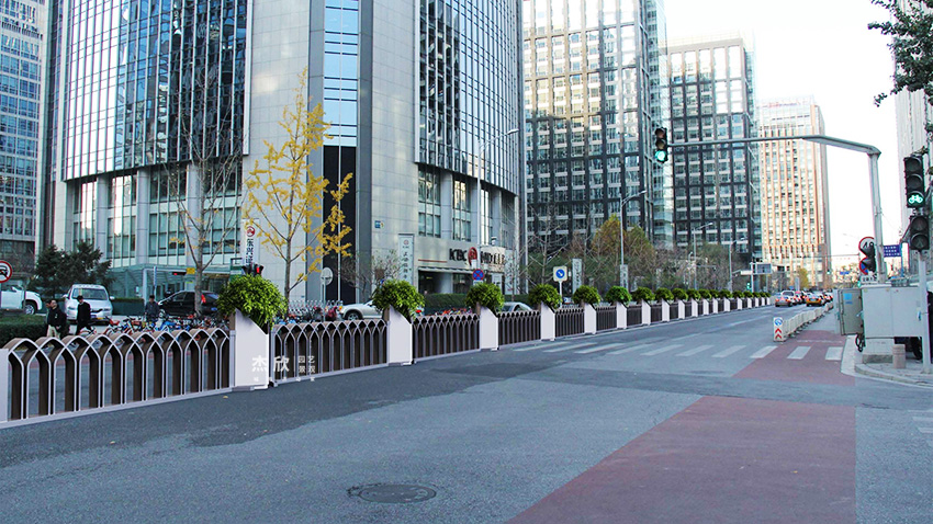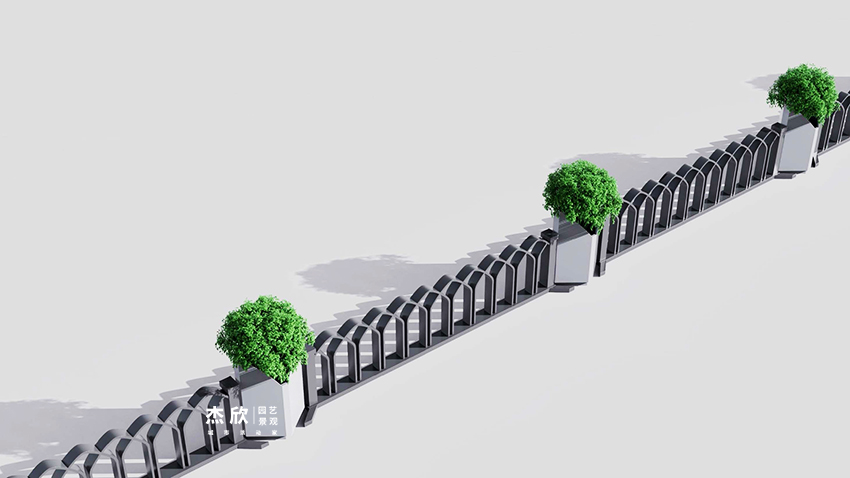 不同于常見的防護欄,這款花箱護欄不論在用色還是造型上都具有現(xiàn)代風格。
