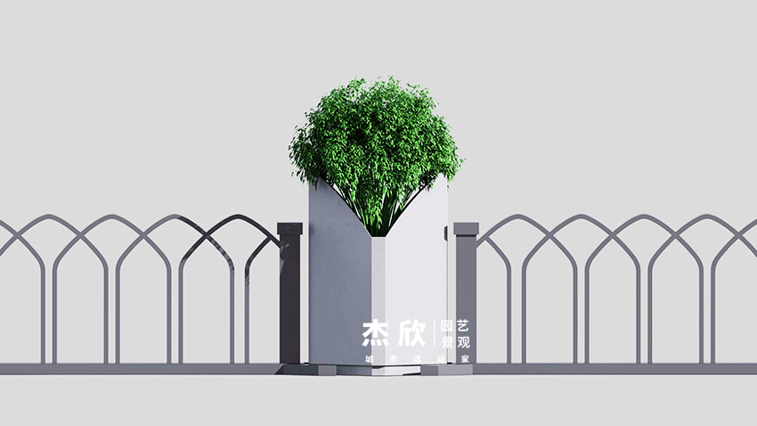 花箱部分,仿衛(wèi)士形象,堅定挺拔。冷風格色彩、硬朗線條,組成了這款城市衛(wèi)士花箱的特色。