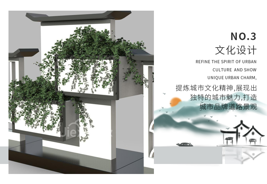 設(shè)計師從江南古建的線條與構(gòu)思中獲得靈感,以簡潔明朗的線條、溫和如水的氣質(zhì),通過色彩濃淡、光影變化、長短對照的綜合考量,平添了幽雅靜謐又怡然自然的道路空間美學。