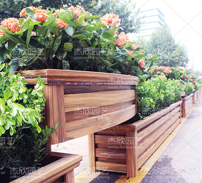 紅木色花箱組合,搭配綠植,營造了天然的生態(tài)景象。