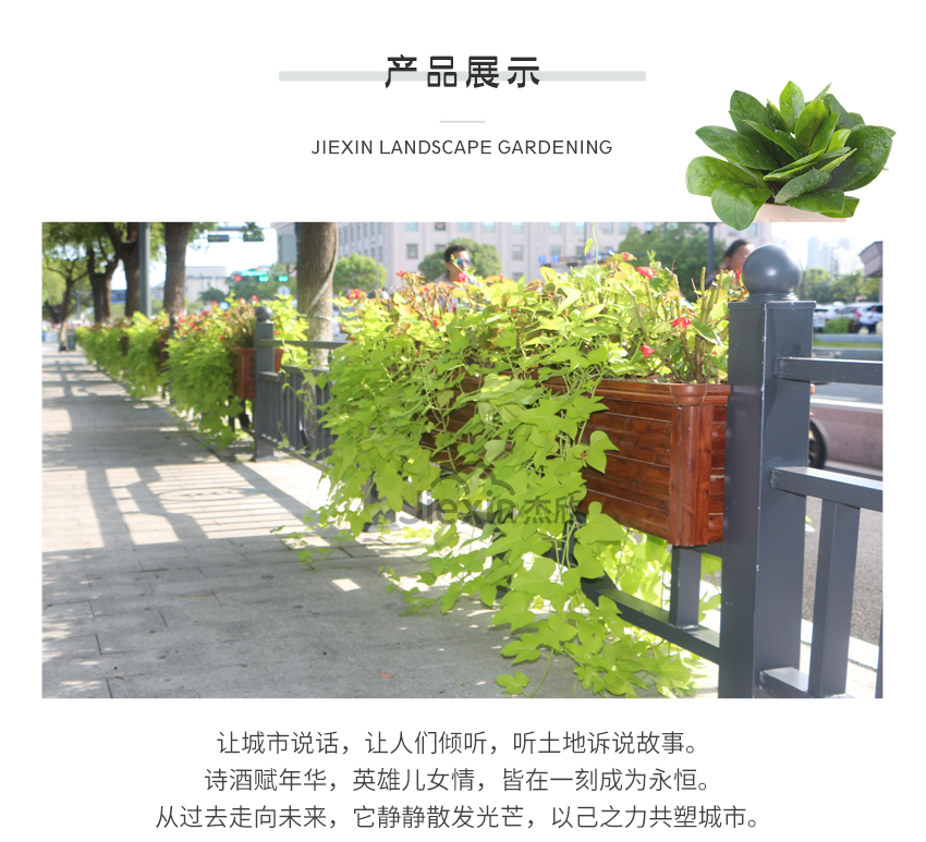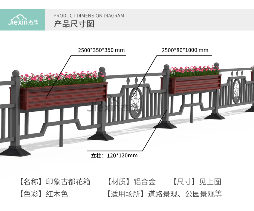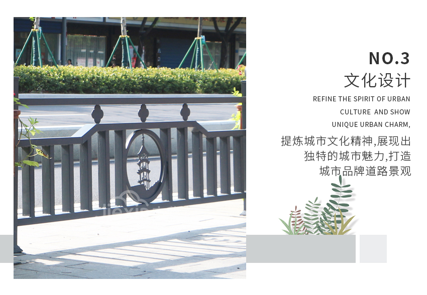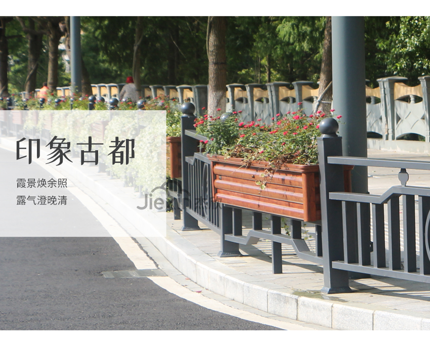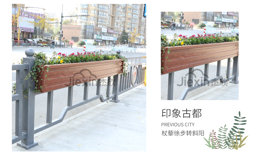 這款花箱護(hù)欄在設(shè)計元素中添加了地方特色,古老的寶塔凸顯出城市的文化底蘊(yùn)。