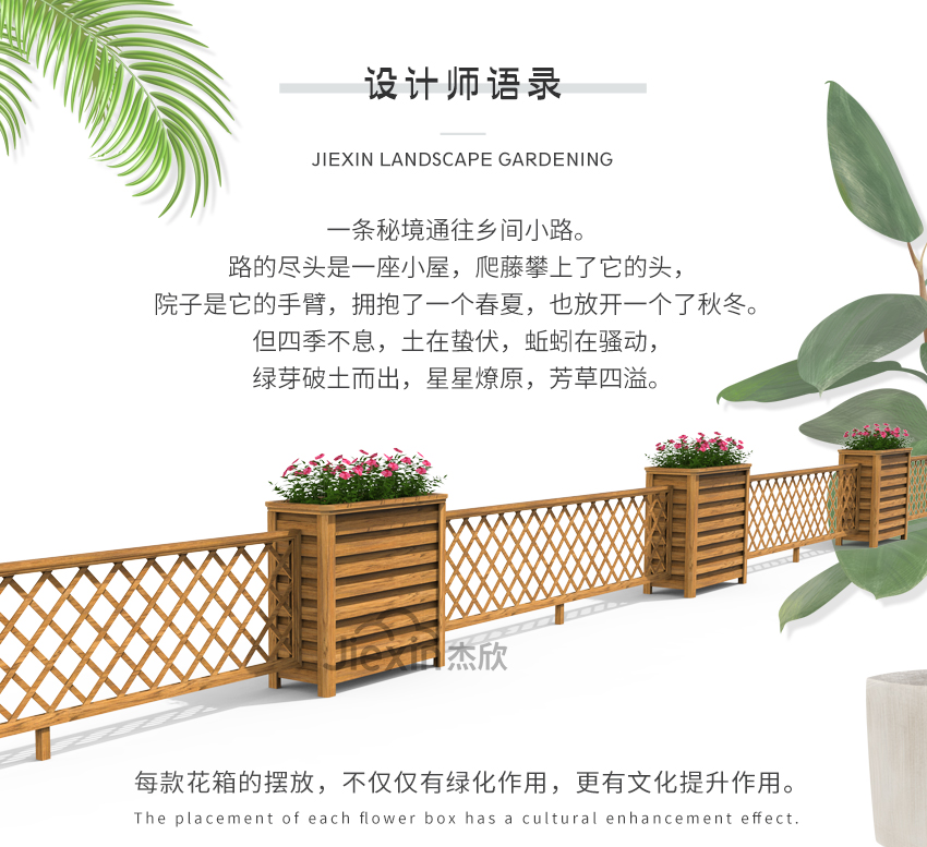 黃檀木色的花箱護(hù)欄,不僅貼近自然,而且充滿了和諧的氣息。