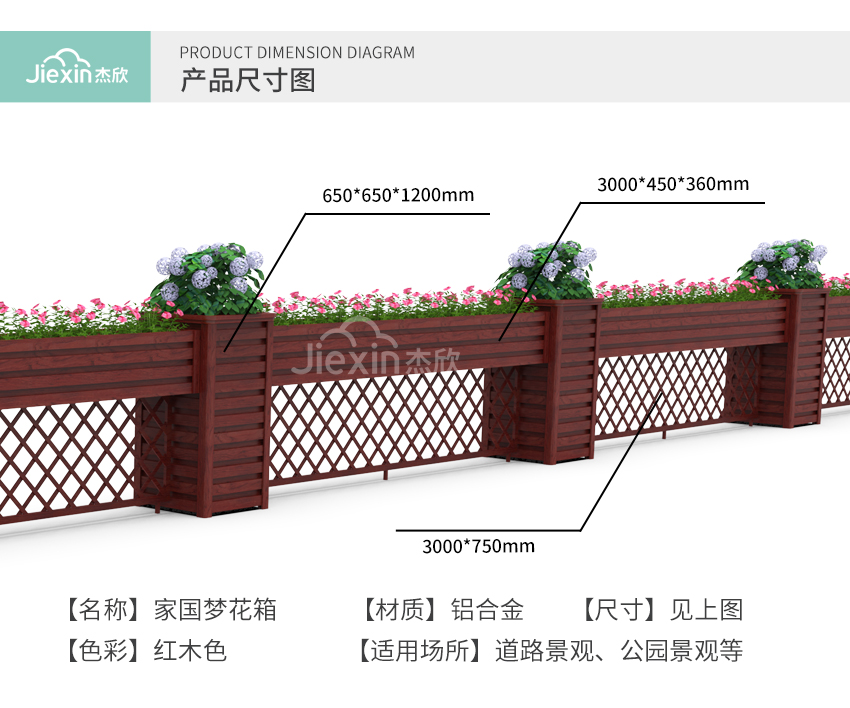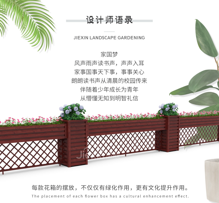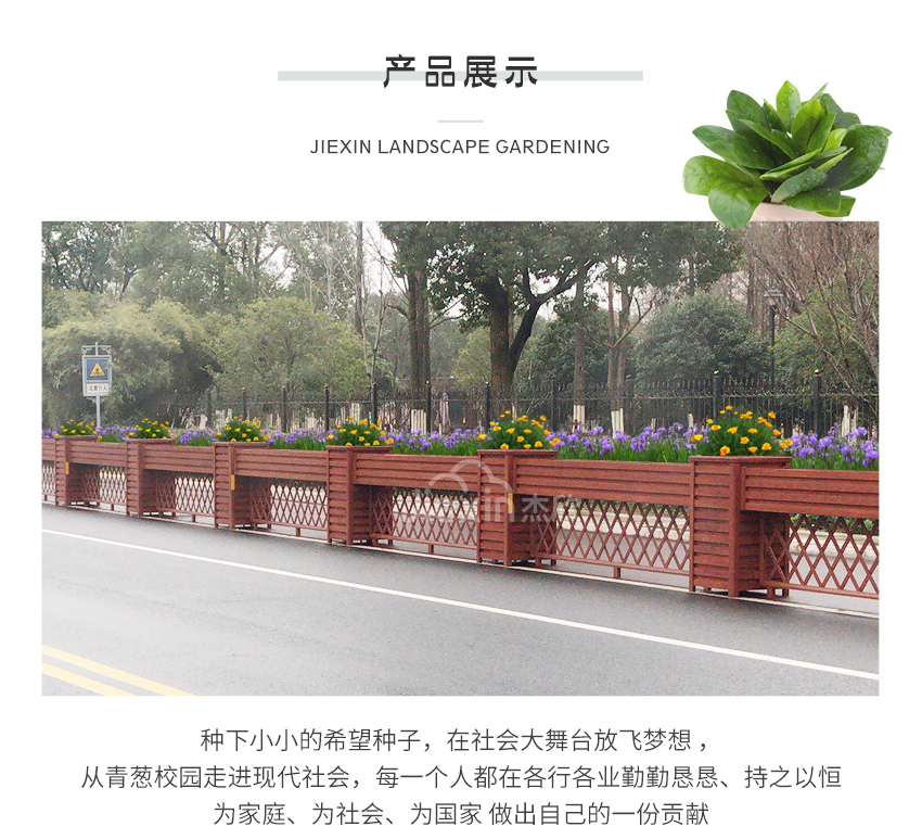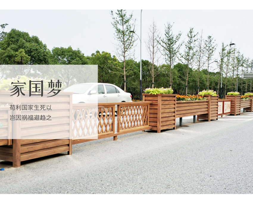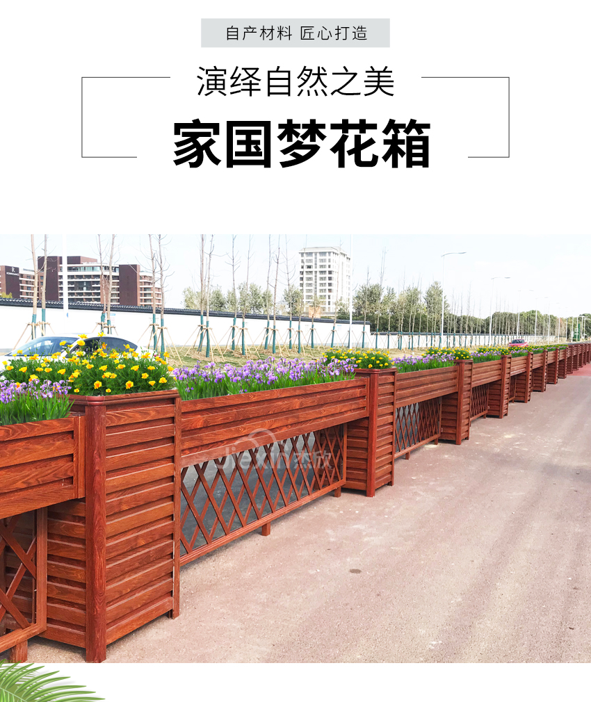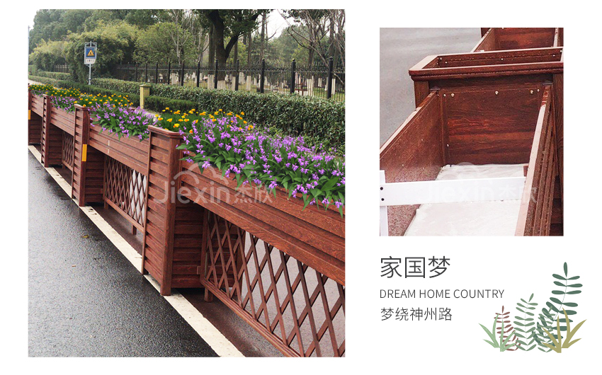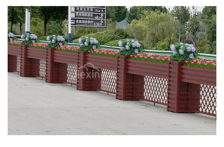 黃檀木色花箱護欄,能夠適用城市街道的景觀。