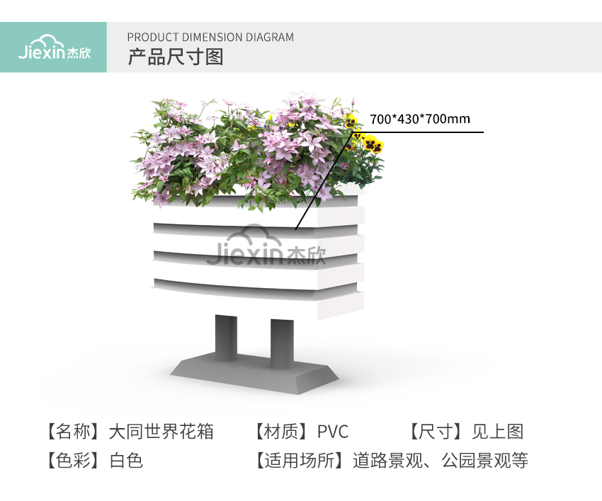 造型簡約的PVC花箱,在道路上也是一道優(yōu)美的風(fēng)景線
