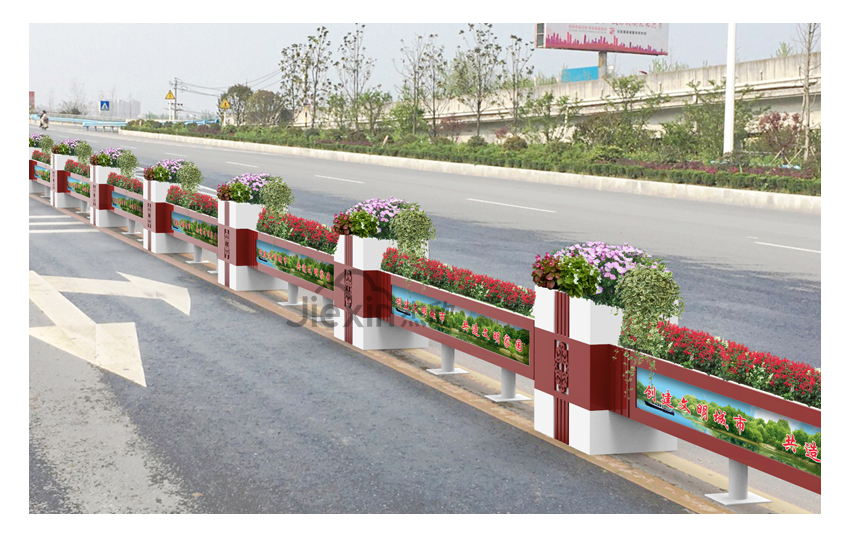 長條的隔離花箱造型,簡潔大方,反而有鮮明的視覺效果,非常適合道路隔離花箱使用。
