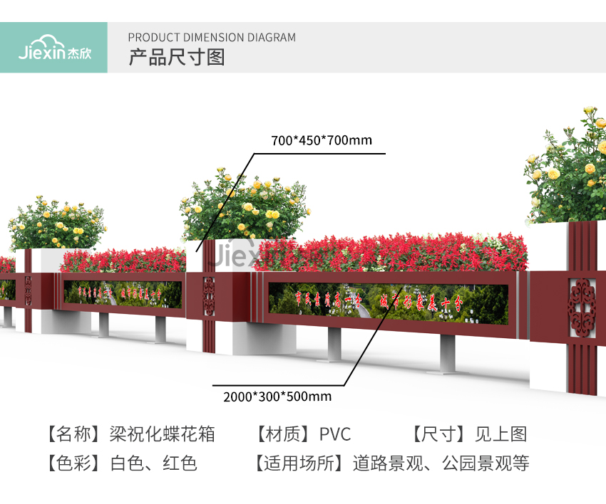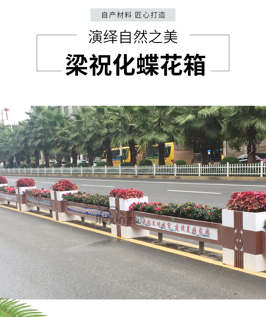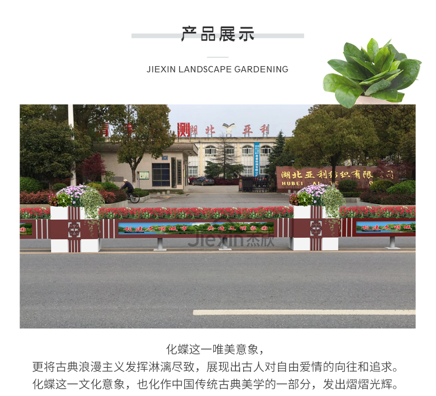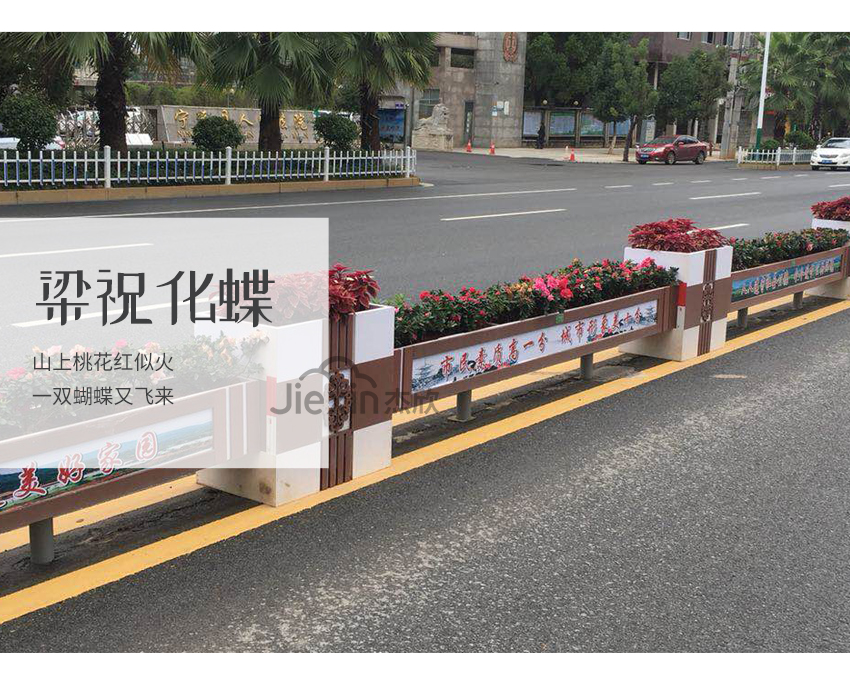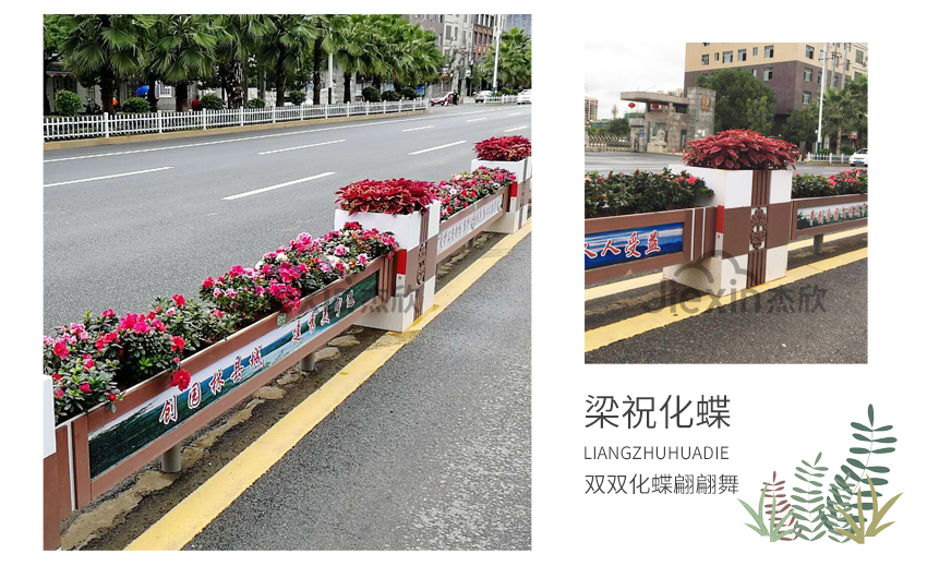 蝶紋設(shè)計元素的隔離花箱也不多見,而且可以和城市宣傳畫結(jié)合,顯得古典雅致。