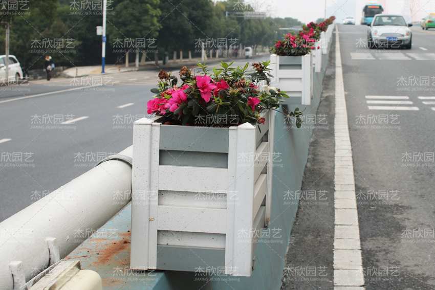 第二種,安裝式花箱。安裝式花箱是卡位在橋梁上,一般是機非隔離帶上。安裝式花箱的寬度要根據(jù)隔離帶來設(shè)置。