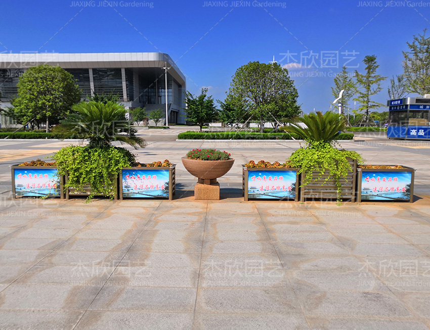 組合花箱以造型簡(jiǎn)單為特點(diǎn),能夠廣泛適應(yīng)場(chǎng)景,起到景觀提升的作用。除此之外,貼畫組合花箱,在組合花箱的基礎(chǔ)上,融入一些特色文化元素,展現(xiàn)出豐富的城市文化氛圍。