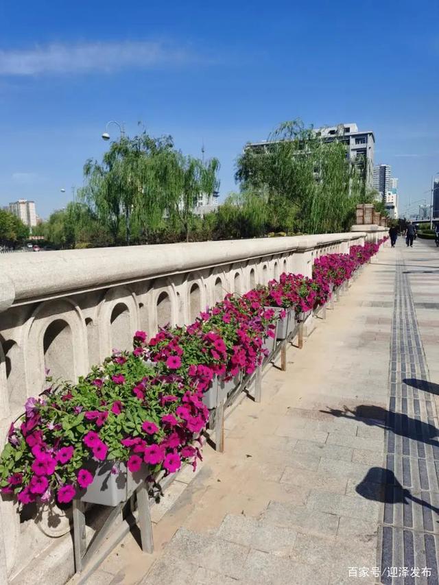 綠化隊在建設(shè)路高架橋(朝陽街至南內(nèi)環(huán)街段)的中間隔離欄新建了立體花箱,栽植大花月季2000余株,同時安裝了先進的滴灌系統(tǒng)、排水系統(tǒng);在沿南沙河的建設(shè)路橋、青年路橋、新建路橋、雙塔西街橋等七座橋上安裝了鋼架結(jié)構(gòu)的花架及花箱1000余個,栽植矮牽牛,增添道路色彩,提升群眾的出行環(huán)境。