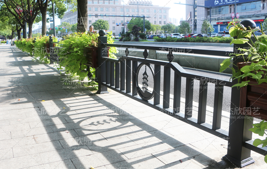 花箱護(hù)欄,一個花箱一段護(hù)欄,這樣就組成簡單的花箱護(hù)欄。護(hù)欄可以是鋅鋼護(hù)欄,也可以是鋁合金護(hù)欄。