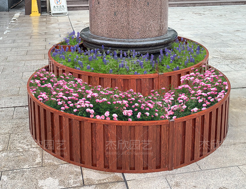 接下來是一個樹圍花箱 ,大家對樹圍花箱還是挺熟悉的吧。大多數(shù)的樹圍花箱,是沒有底板的,就在樹木的四周圍一圈,便利實用。這款樹圍花箱是兩層組合,又多了些造型感,用于樹木、圓柱等等。