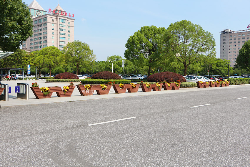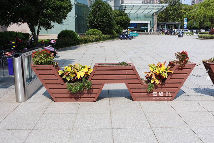 Pvc紅木色W形創(chuàng)意花箱外觀(guān)顏色可選,白色、紅木色為主,匹配場(chǎng)景美化使用。