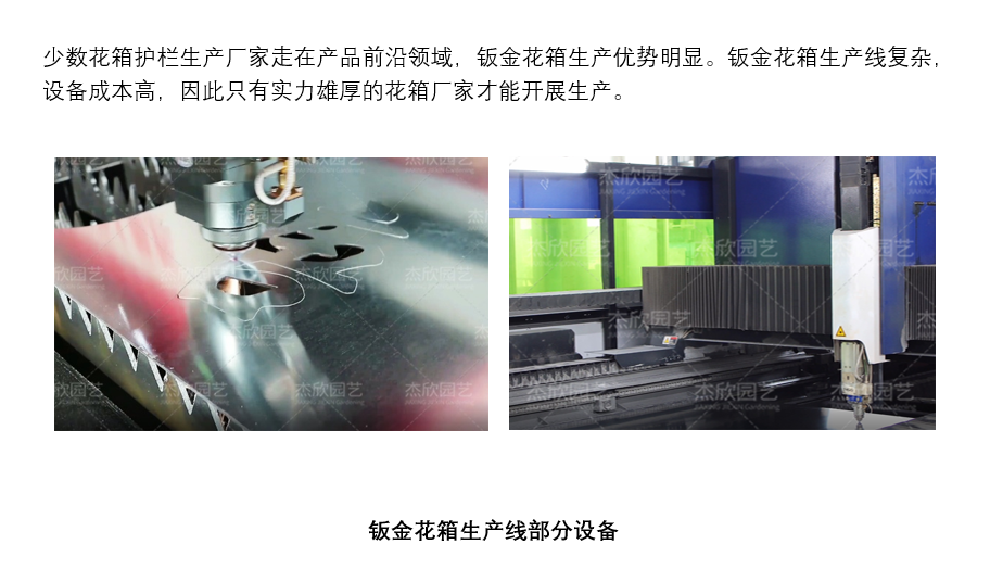 少數(shù)花箱護欄生產(chǎn)廠家走在產(chǎn)品前沿領(lǐng)域,鈑金花箱生產(chǎn)優(yōu)勢明顯。鈑金花箱生產(chǎn)線復(fù)雜,設(shè)備成本高,因此只有實力雄厚的花箱廠家才能開展生產(chǎn)。