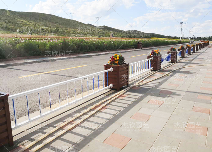 花箱護欄組合中花箱組合款,沒有護欄,通過花箱和花箱的組合形成,花箱護欄則通過花箱和護欄形式交替。