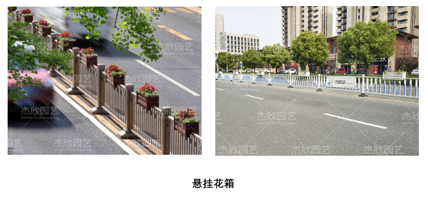 2. 懸掛類護欄上方可以固定花箱,懸掛類護欄一大優(yōu)勢就是不擠占道路空間,提升效果明顯。