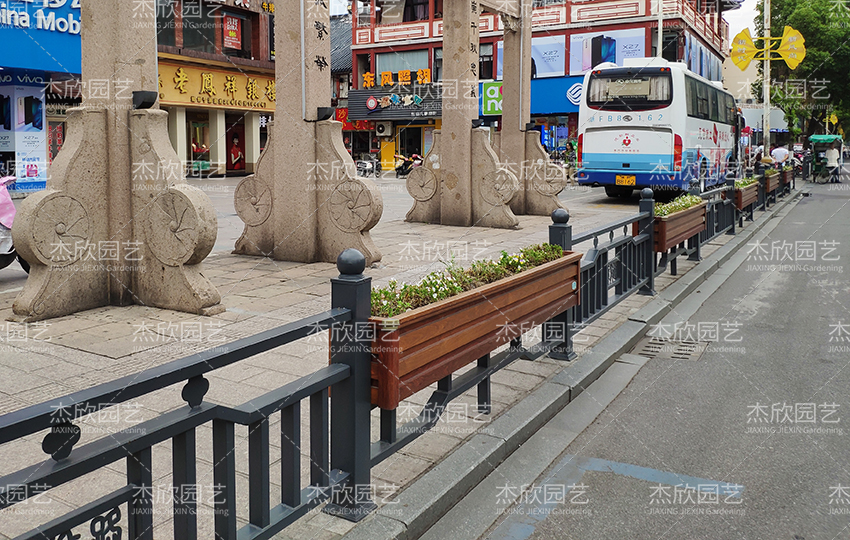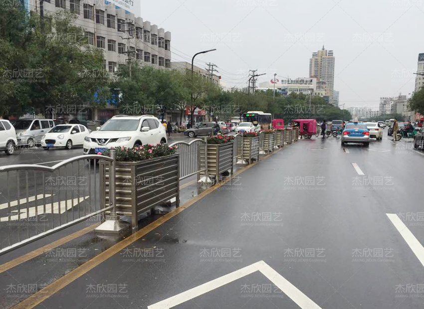 隔離帶花箱的款式選擇很多,但要注意的是,在花箱高度和寬度上尤其要慎重。計(jì)算好花箱加上花草的高度,花箱寬度在分隔帶之內(nèi),不影響道路交通。