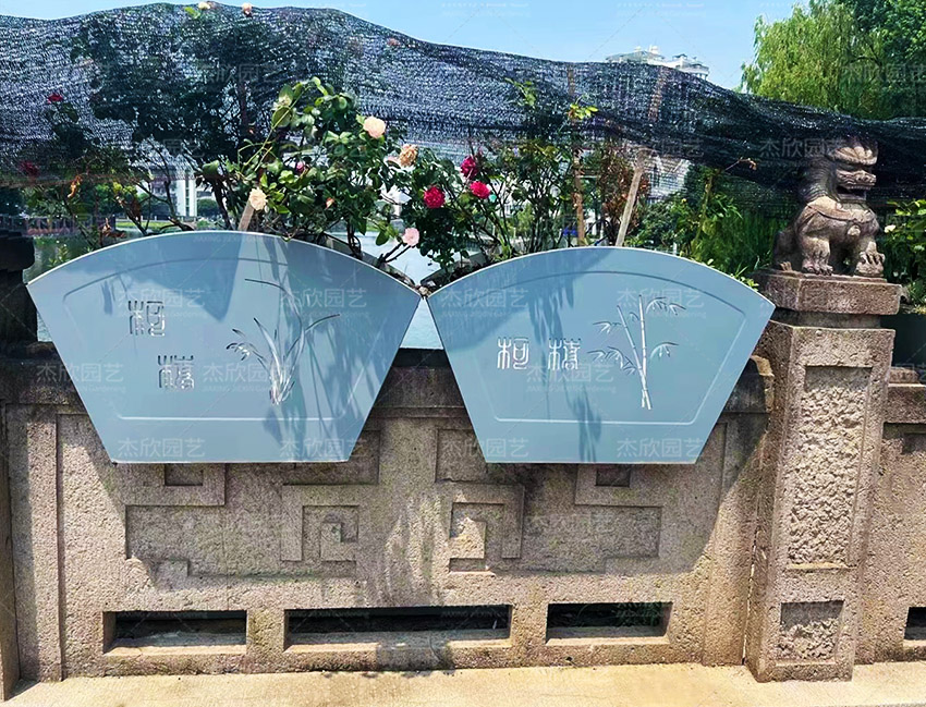 天青色的煙雨,我在等你。青作為傳統(tǒng)色,既有中華美學(xué),也呼應(yīng)了生態(tài)建設(shè)綠水青山的內(nèi)涵。古色花箱為橋梁帶來(lái)靚麗的風(fēng)景。