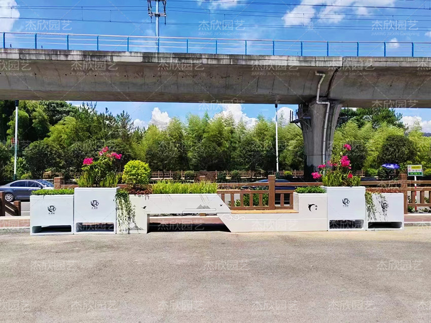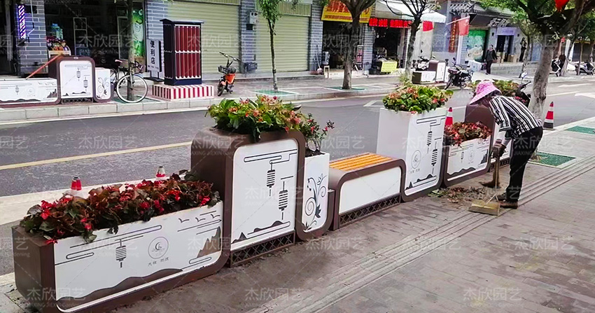 座椅花箱多見(jiàn)于城市街道、公園、廣場(chǎng),這款座椅花箱以十足的國(guó)風(fēng)韻味,傳遞出中式美學(xué)。
