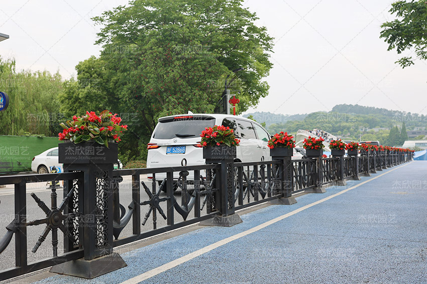 湖岸之心花箱護(hù)欄的設(shè)置,便于景區(qū)交通管理,為游客營(yíng)造有序的出行體驗(yàn),同時(shí)美化場(chǎng)景,提升場(chǎng)景的景觀性。