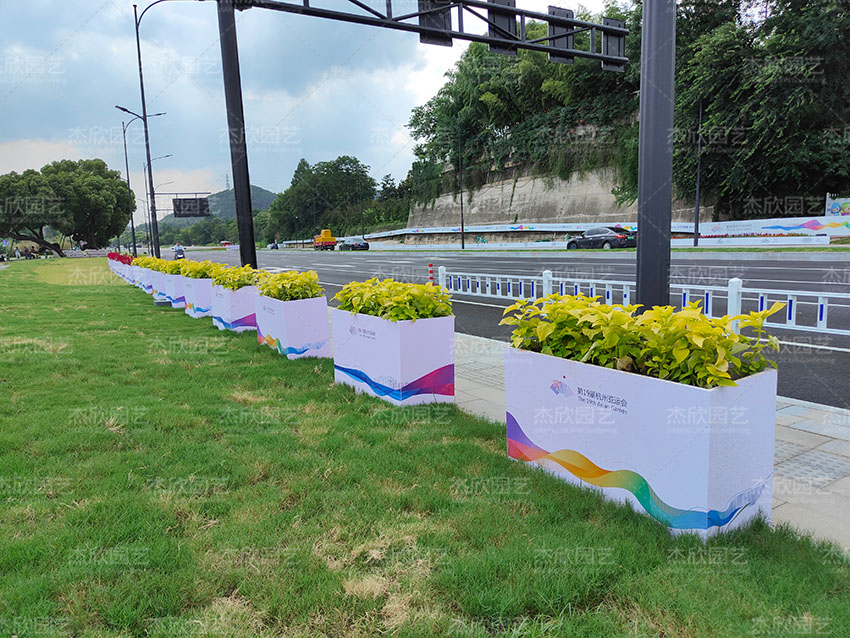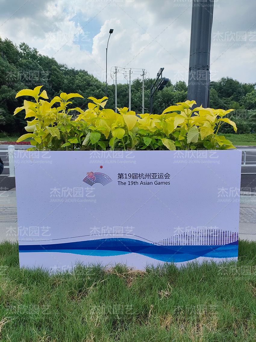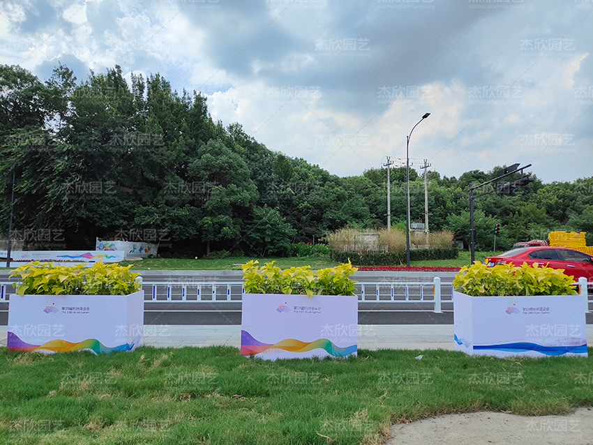 箱體由PVC構(gòu)成,外觀圖案以UV打印,栽植綠卉,勃勃生機(jī)、清爽襲人。一路望去,亞運(yùn)氣息撲面而來。