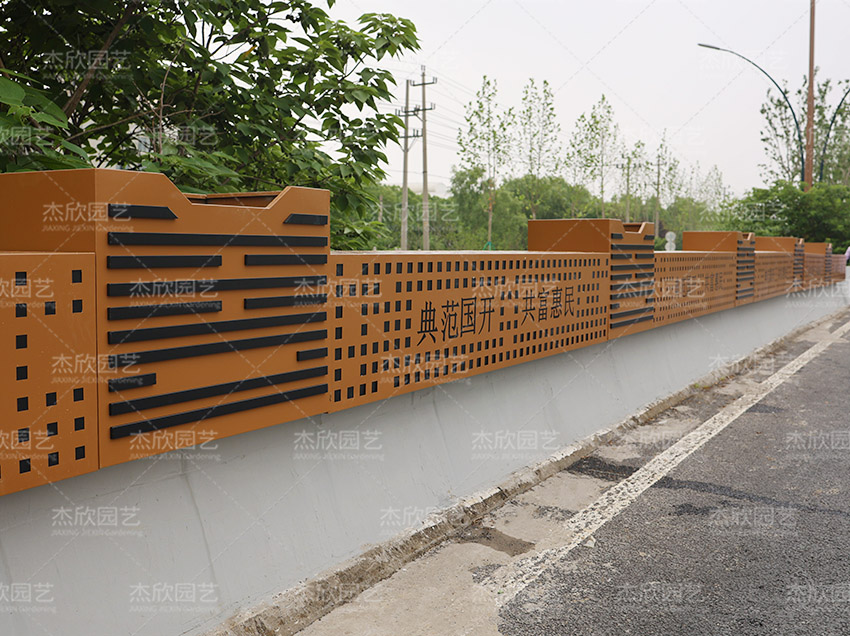 豐收時代花箱,以”共富惠民”為主題,運用嘉善地名字符,結(jié)合點點日光,打造出新時代新征程下嘉善區(qū)域創(chuàng)新創(chuàng)造創(chuàng)富的喜悅面貌。