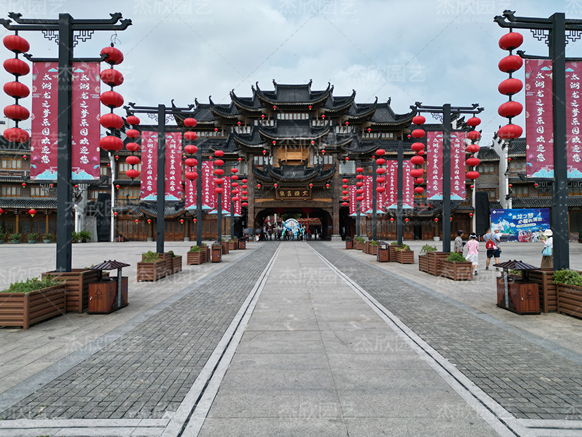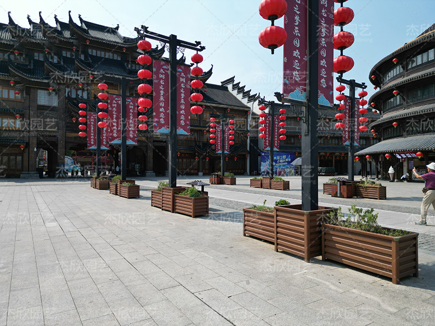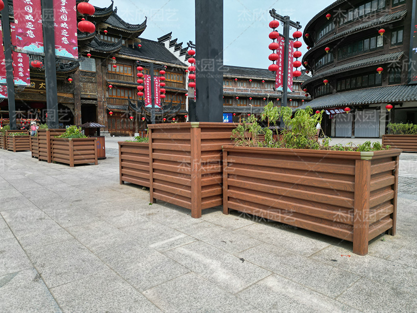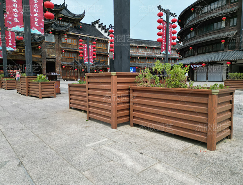 鋁合金花箱不僅適用于街道、商場,還適用于古鎮(zhèn)景點,尤其是黃檀木色花箱,與古鎮(zhèn)的風景更為貼合。