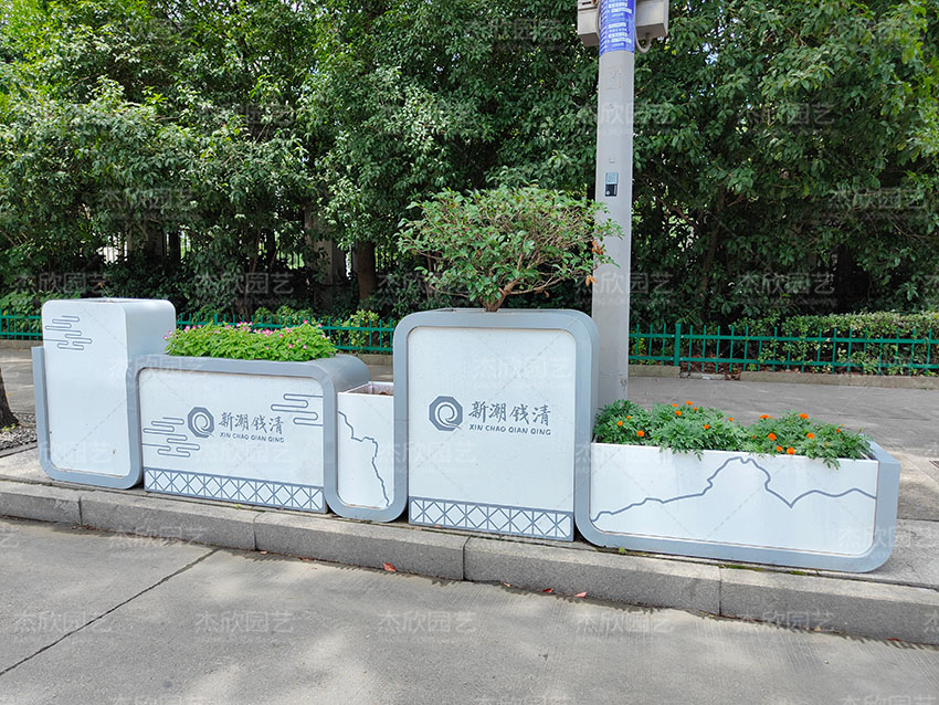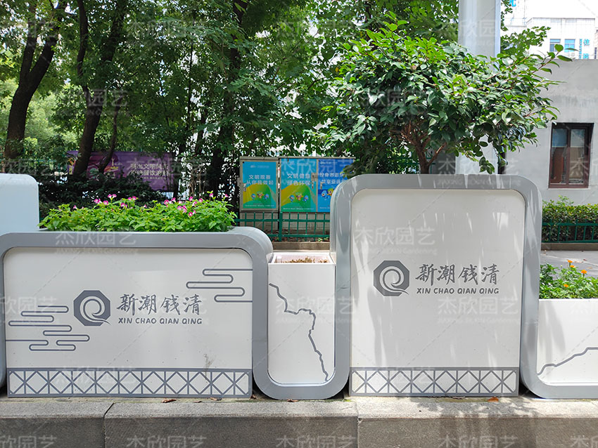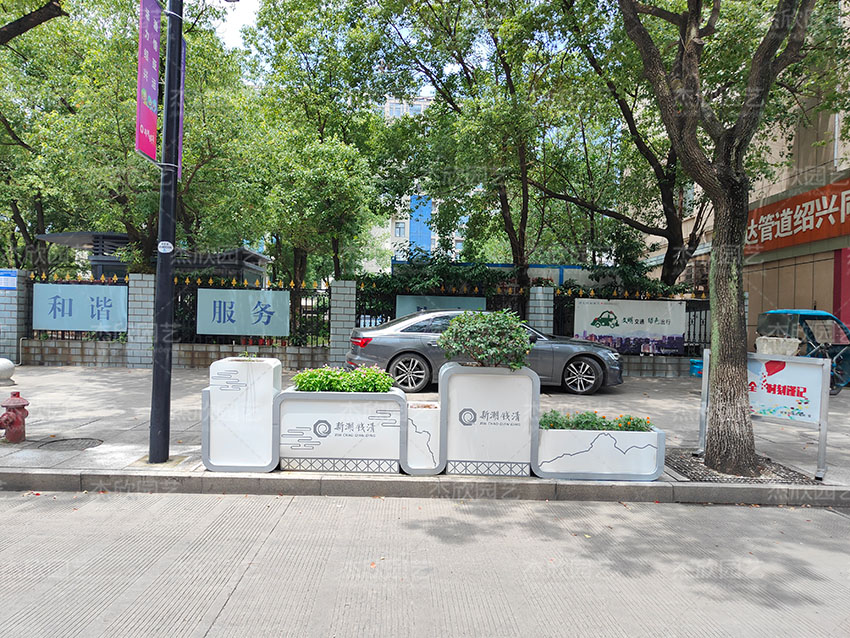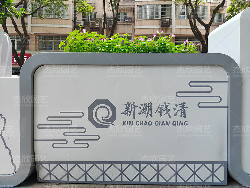 山水輕鉤花箱,以山水為主題,勾勒出人與環(huán)境和諧共處的情景,適合城市街道的美化綠化。