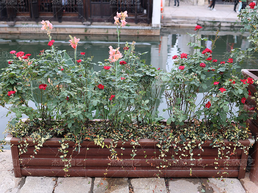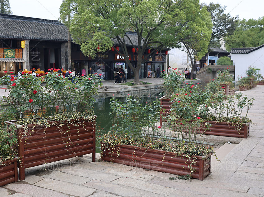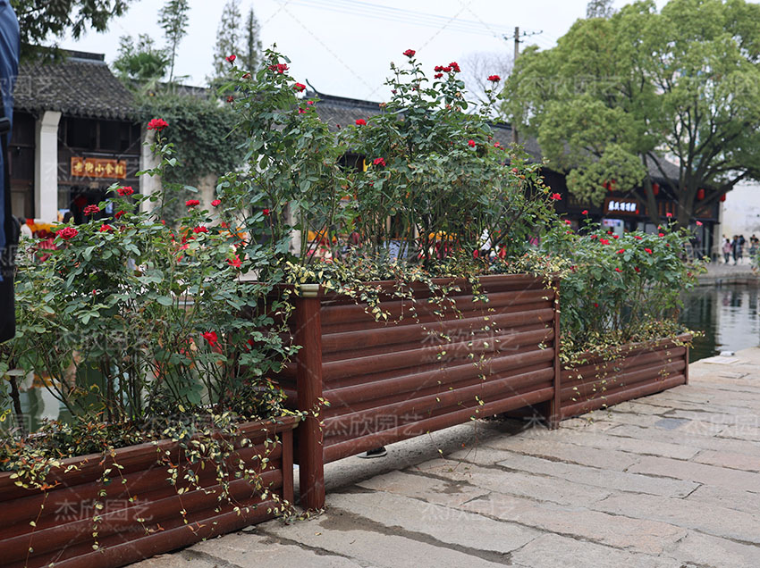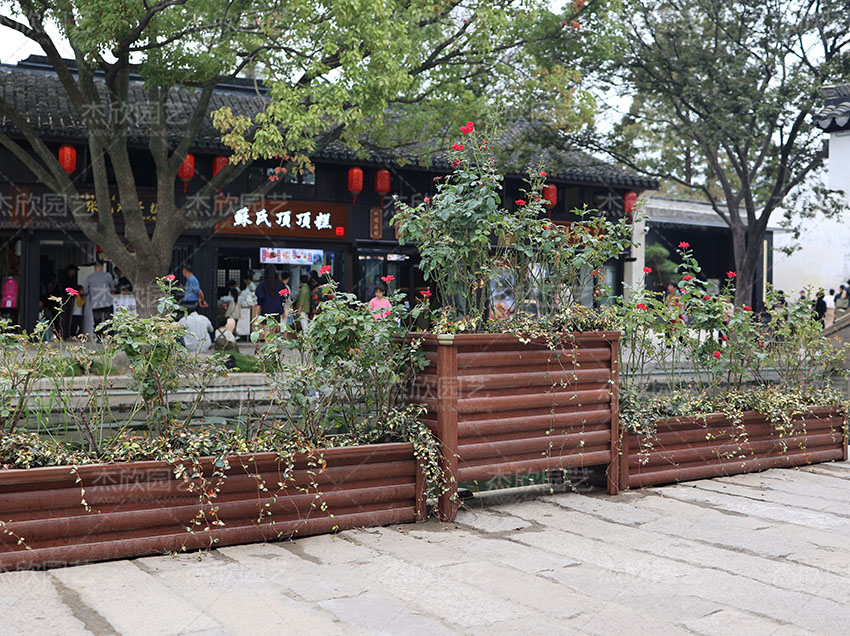 紅木色鋁合金花箱的使用更為廣泛,可使用于多個場景,提升景觀效果更明顯。