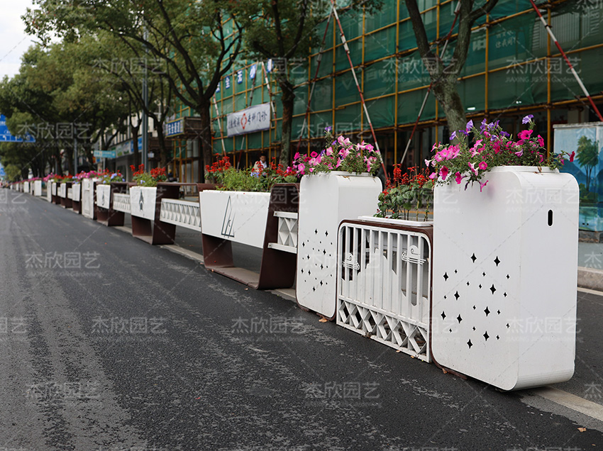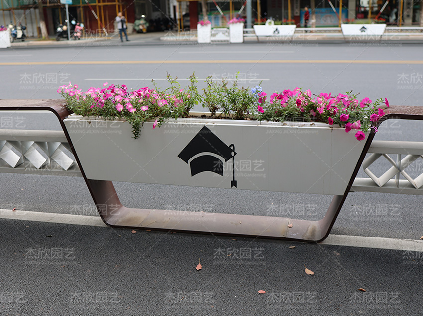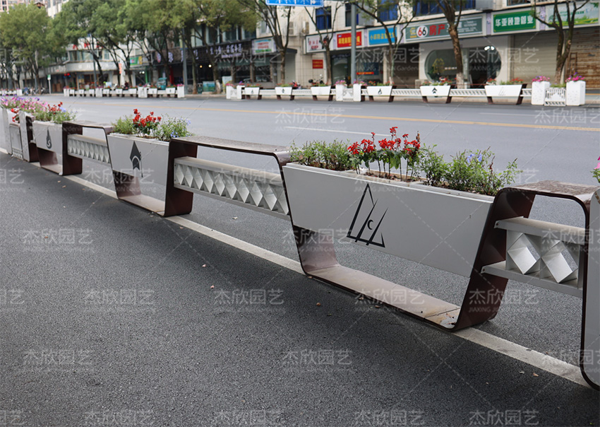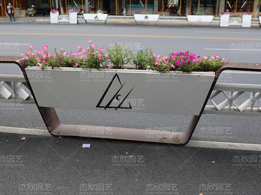 山水輕鉤花箱,寓意城市的生態(tài)發(fā)展,以山水意境闡述中國現(xiàn)代城市生態(tài)發(fā)展理念。