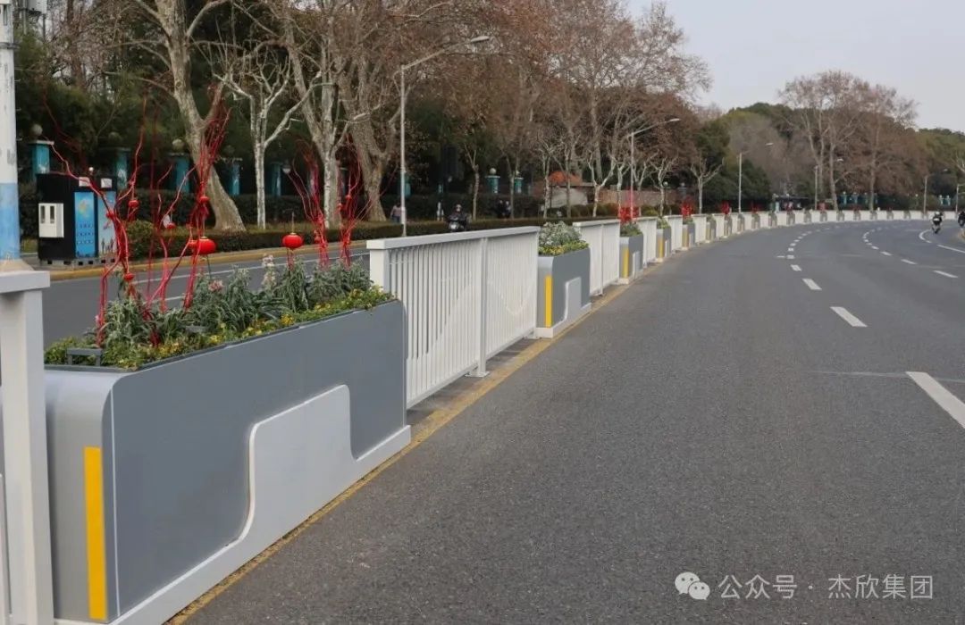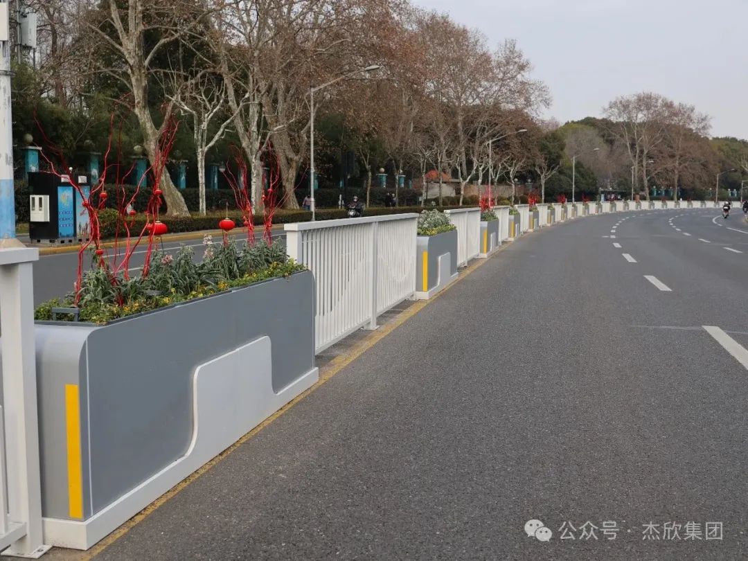 四季流轉(zhuǎn),美景常在?;ㄏ渥o(hù)欄與套配花盆構(gòu)成了虹橋路的花卉景觀,相伴人們走過春夏秋冬。為迎接新春佳節(jié),還精心配制了新春掛墜,喜氣洋洋。