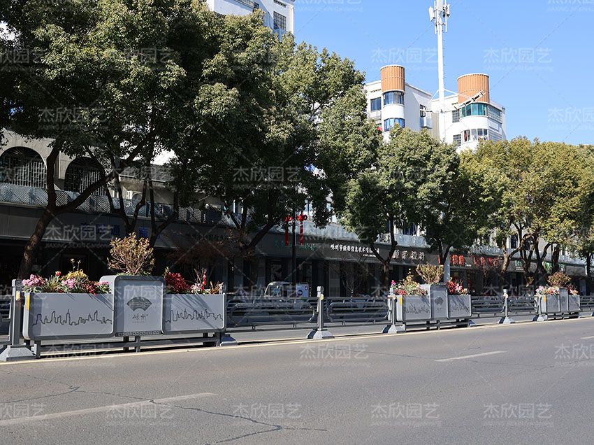 不銹鋼花箱融入靈秀三寶,自然活潑,趣味了然,成為提升城市道路的風(fēng)景。
