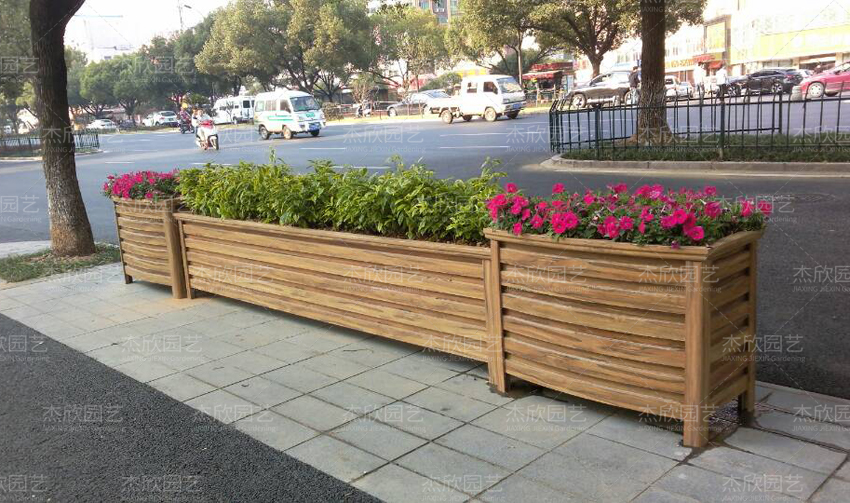 黃檀木色花箱,有較好的景觀提升作用
