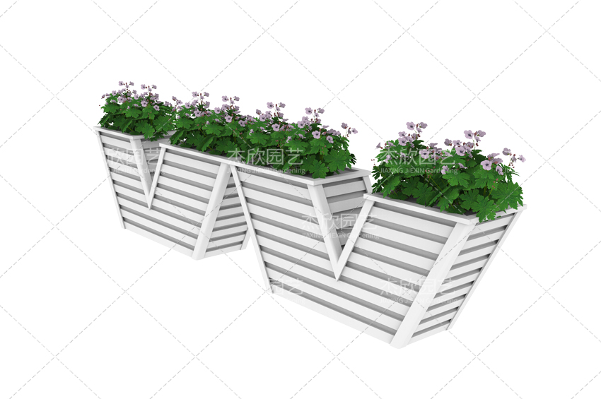 W型花箱,和常規(guī)花箱相比,新穎別致、富有造型??炊嗔顺R?guī)花箱,不妨一試。雖說新穎,但也與道路很合適。白色外觀清新自然,W型和諧耐看