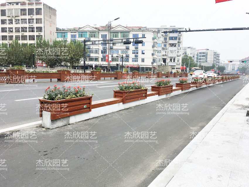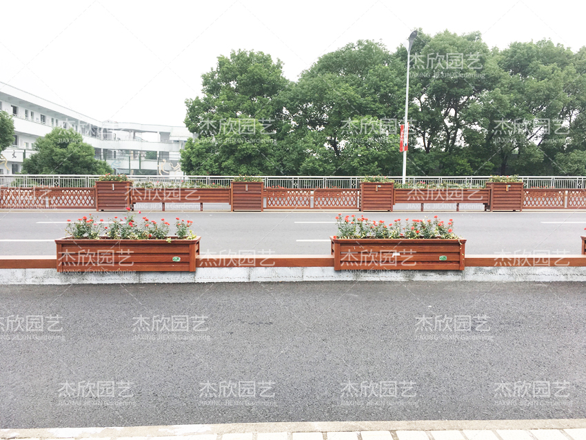 紅色木紋花箱,景觀效果好