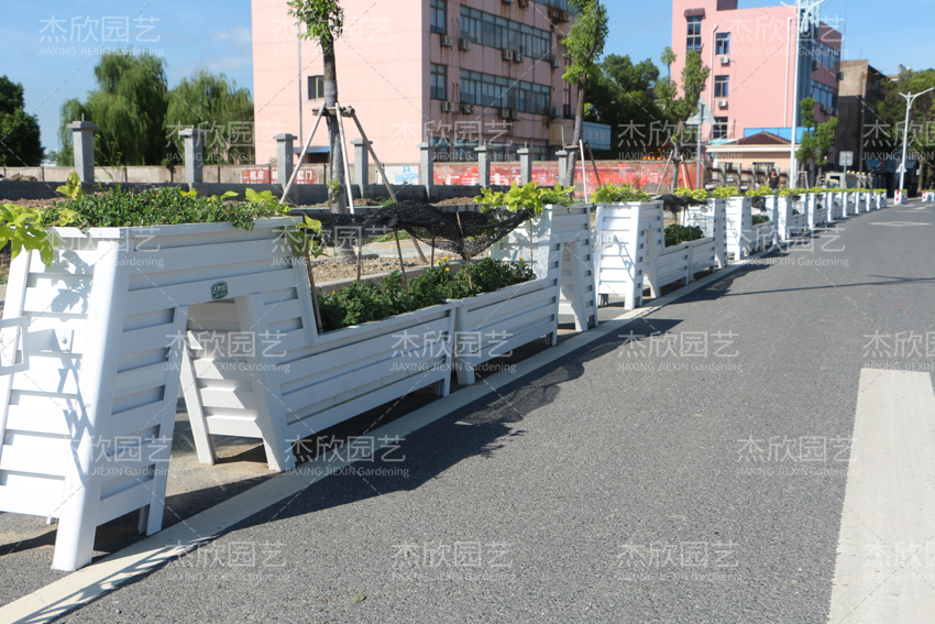 景觀效果:白色花箱與綠植鮮花搭配鮮亮,花箱與道路相協(xié)調(diào),景觀效果明顯,提升道路成景效果。