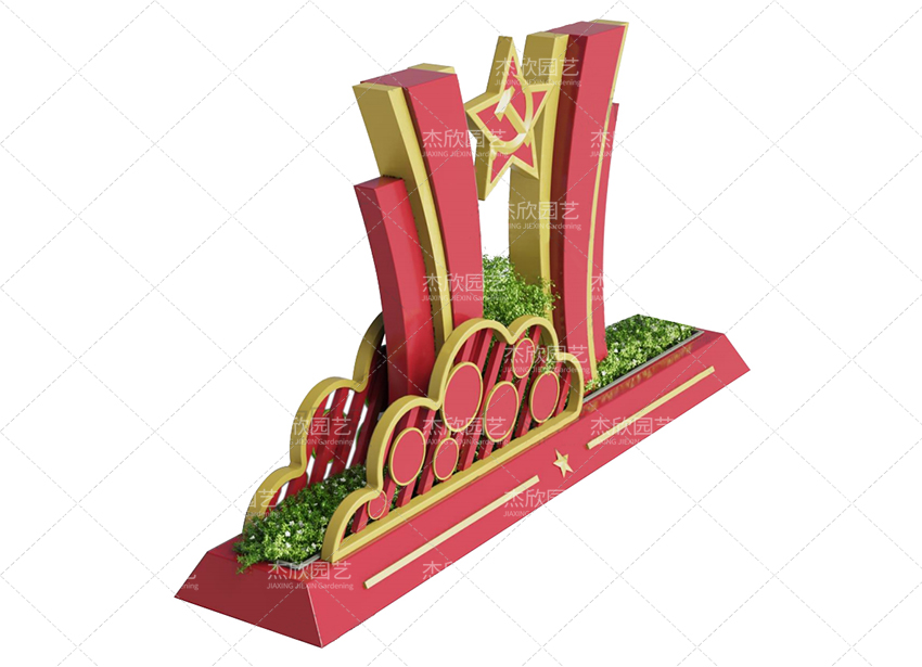 這款花箱整體采用云紋的元素,并抽象的提取黨旗的元素,一方面體現(xiàn)現(xiàn)代感,另一方面表現(xiàn)社會(huì)主義核心價(jià)值觀。