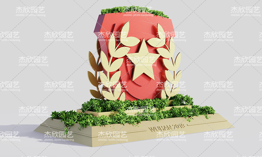 這款花箱線條硬朗,整體造型挺拔,符合軍人剛硬形象,體現(xiàn)軍旅文化,元素取自軍人臂章均有的麥穗、星星和臂章外型,與軍運會主題相呼應(yīng)。