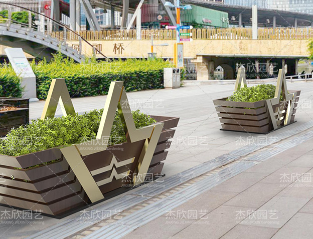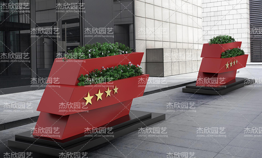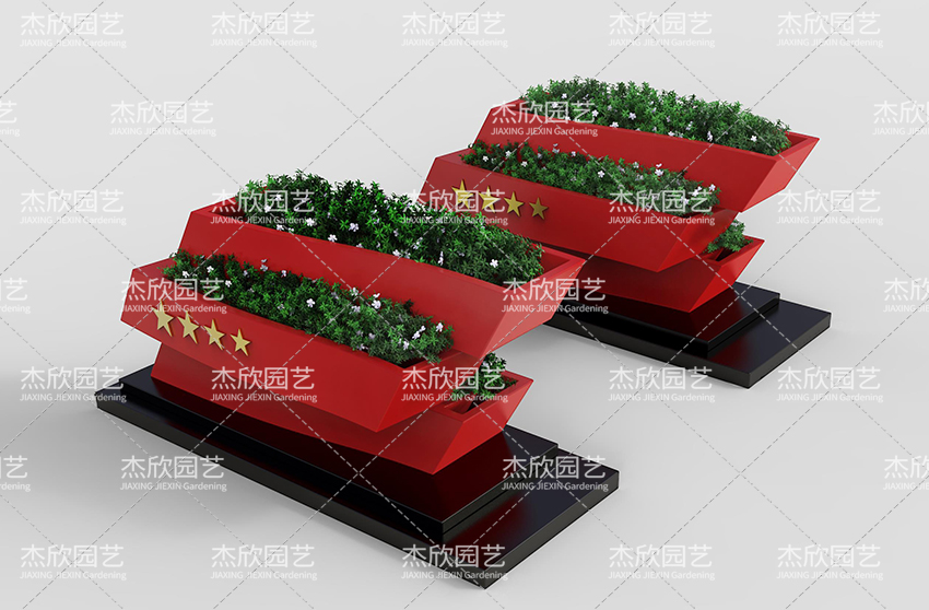 這款花箱大氣簡潔,將飄揚的紅旗用幾何體表達,造型感硬朗十足,整體造型設(shè)計表達了軍運會現(xiàn)代化賽事的特性,體現(xiàn)我國軍事的熱血、剛強。