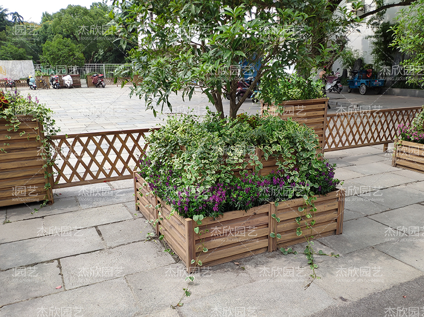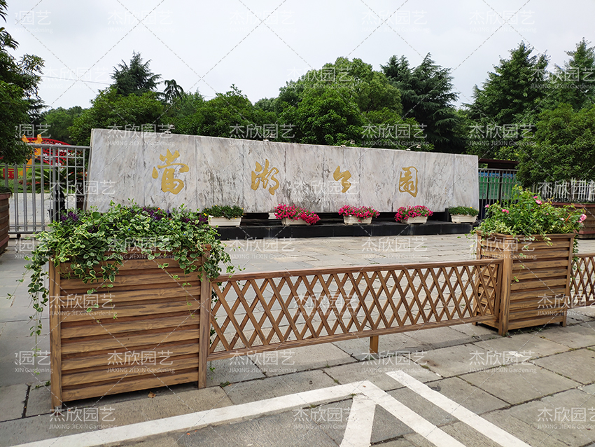 公園名貴樹種邊,可以擺放花箱,起到隔離作用。也可以起到美化作用。