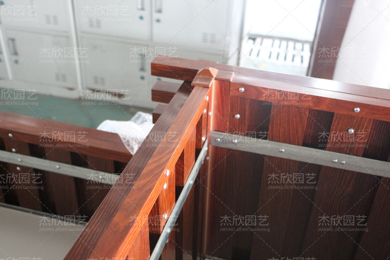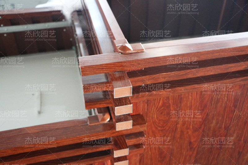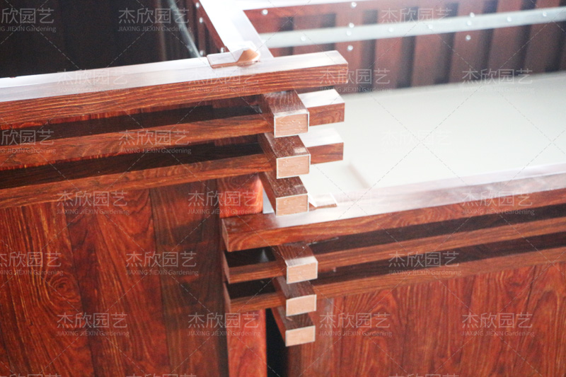 花箱內(nèi)部細(xì)節(jié)展示:側(cè)板用榫卯結(jié)構(gòu)固定,不銹鋼螺絲加固