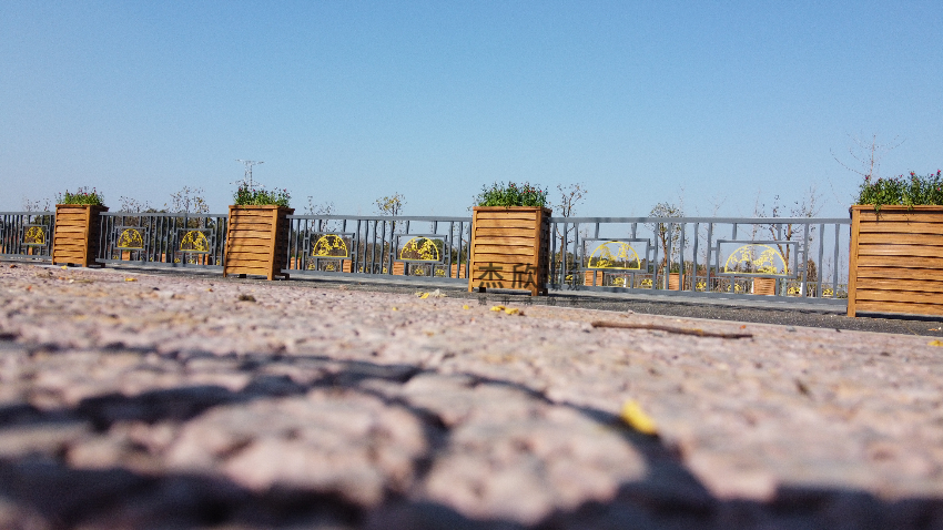 護欄部分融合文化要素,展現(xiàn)出獨到的文化景觀。花箱和護欄結合,綠化與美化一體。
