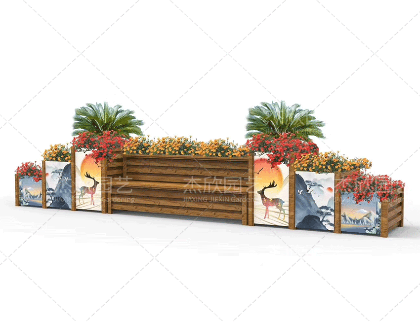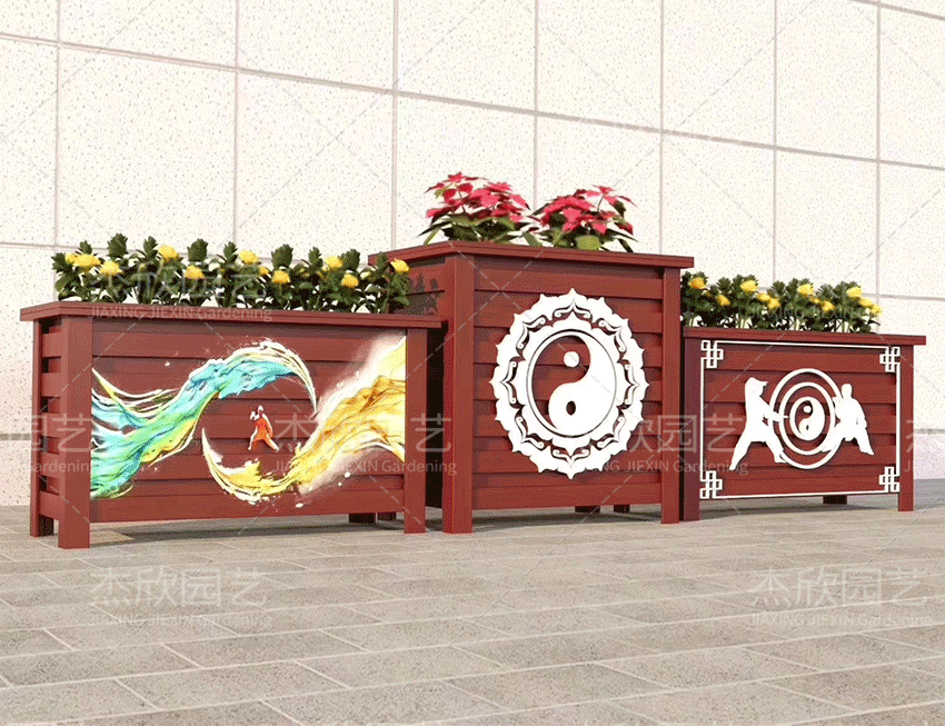 雖然這兩款花箱樣式不同,共同之處在于創(chuàng)造的花箱表現(xiàn)形式。第一款以漫畫形式展現(xiàn)出自然界的壯美風(fēng)光,第二款以繪畫形式展現(xiàn)出武術(shù)之美。